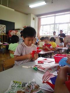 これは、七夕の飾りを一生懸命作っているところなんです